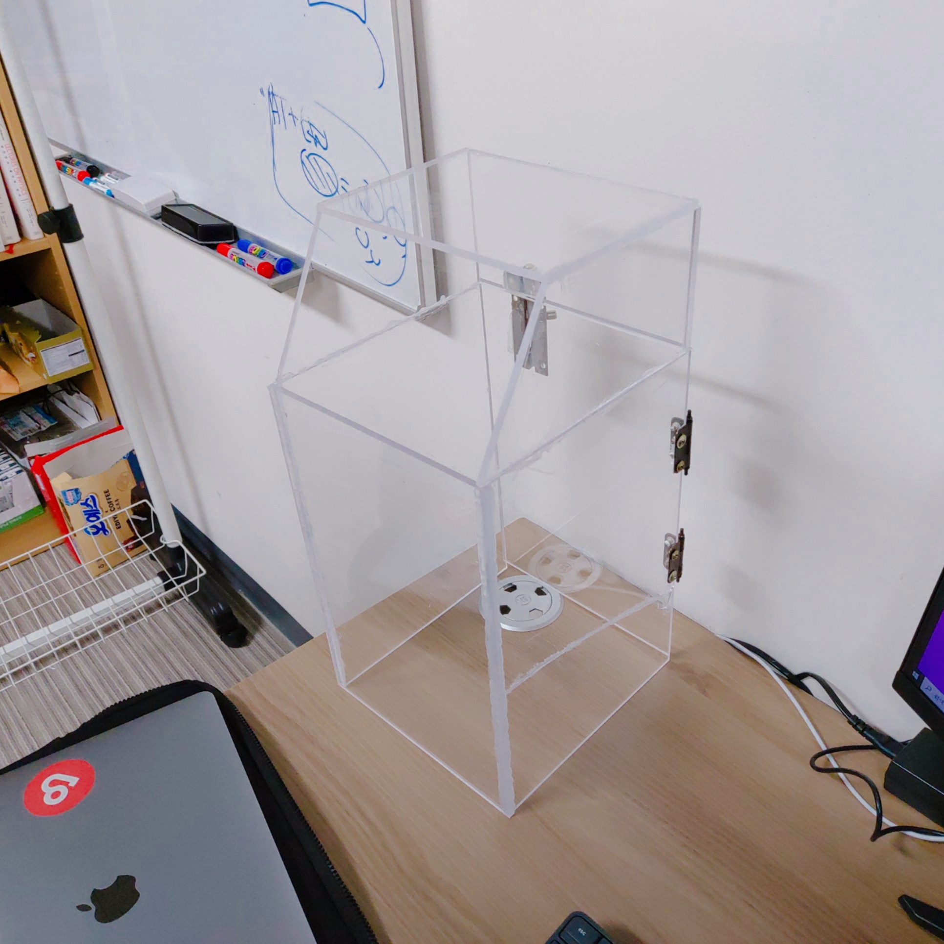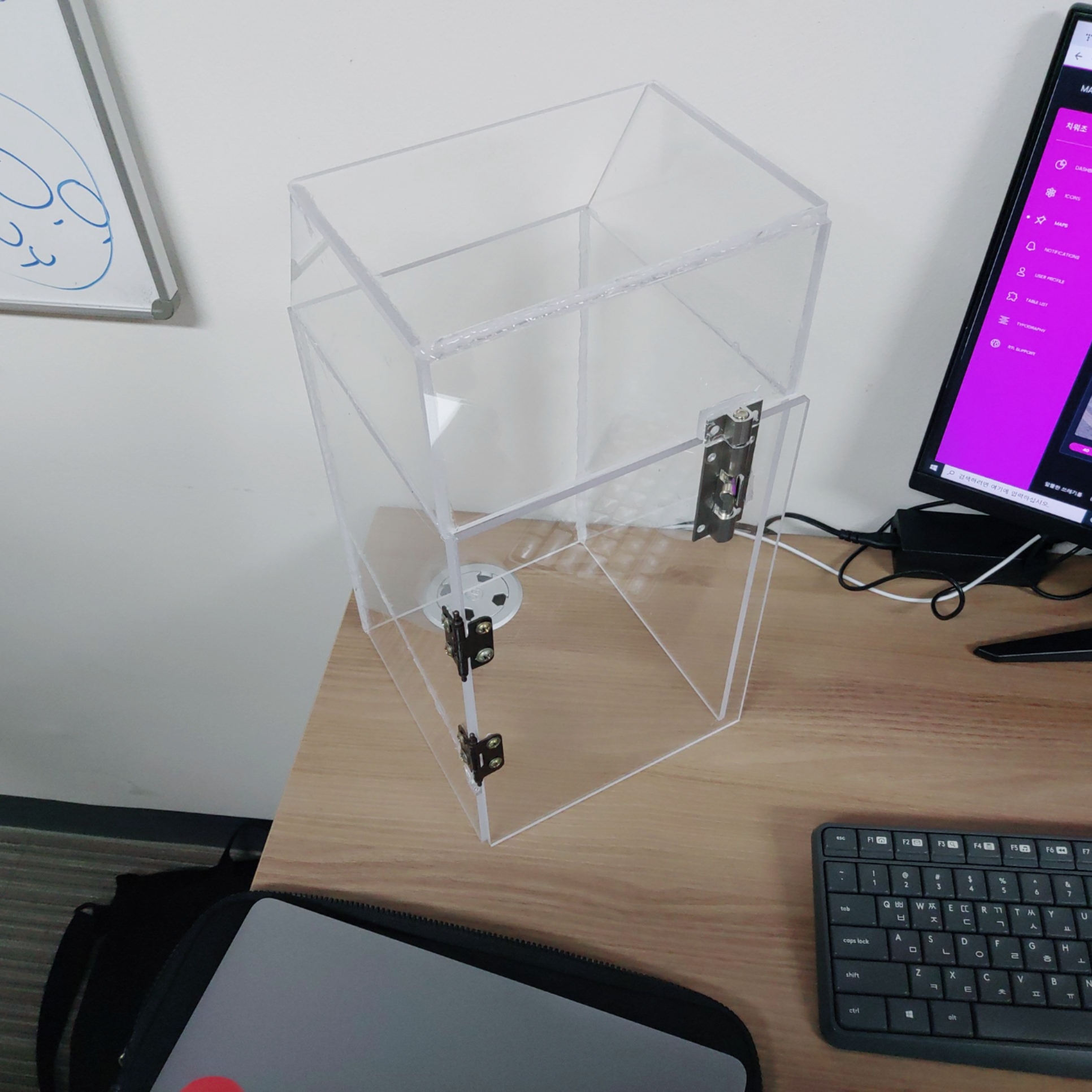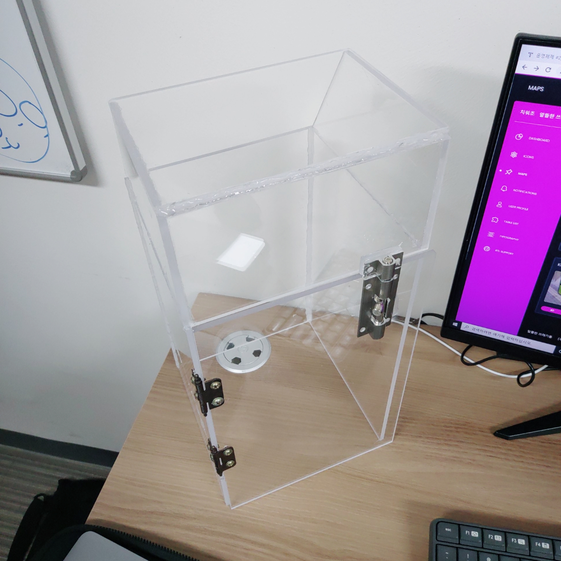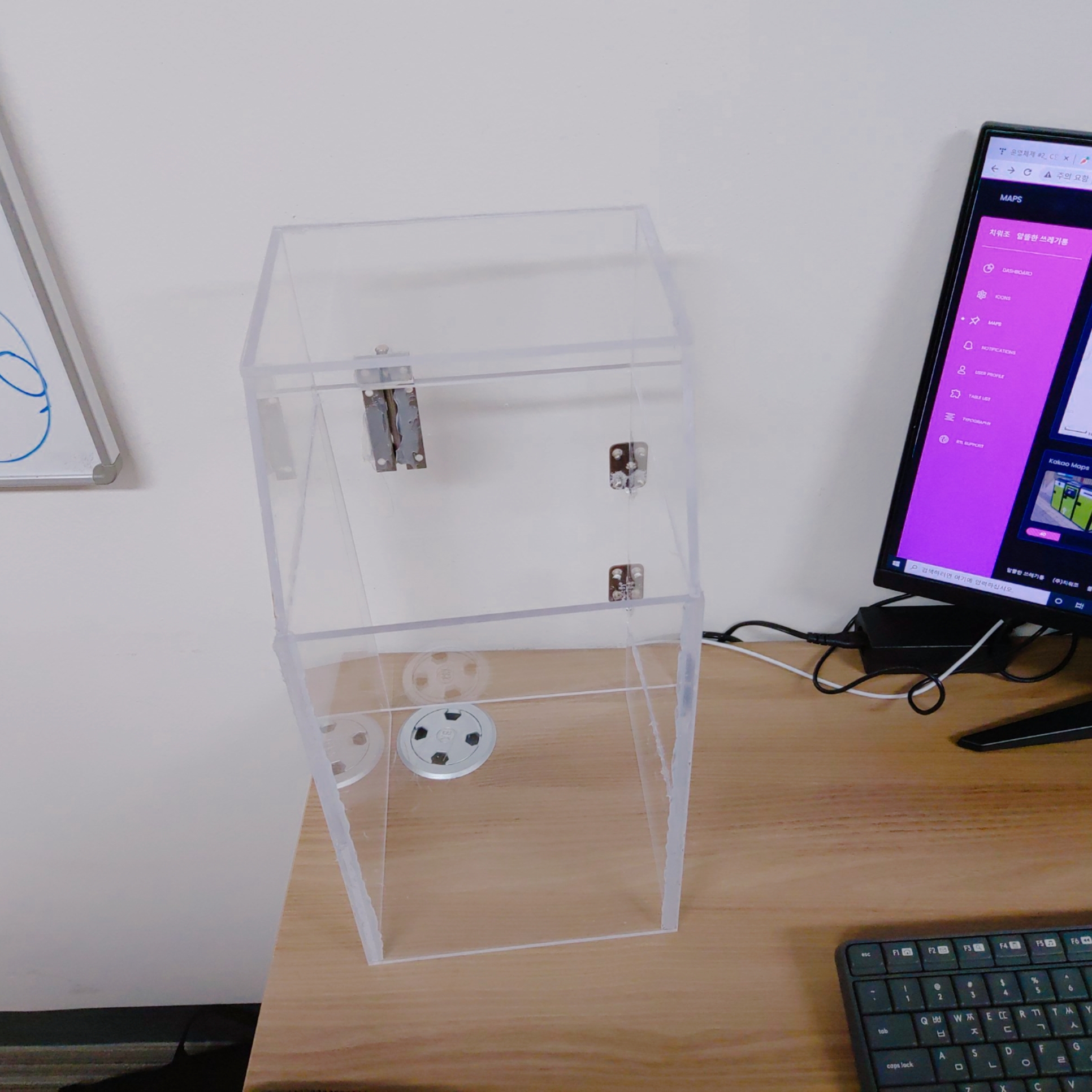 쓰레기 대신 판자를 사용했고, LCD에는 현재 쓰레기통이 몇 % 차있는지 나타나게 하였습니다.