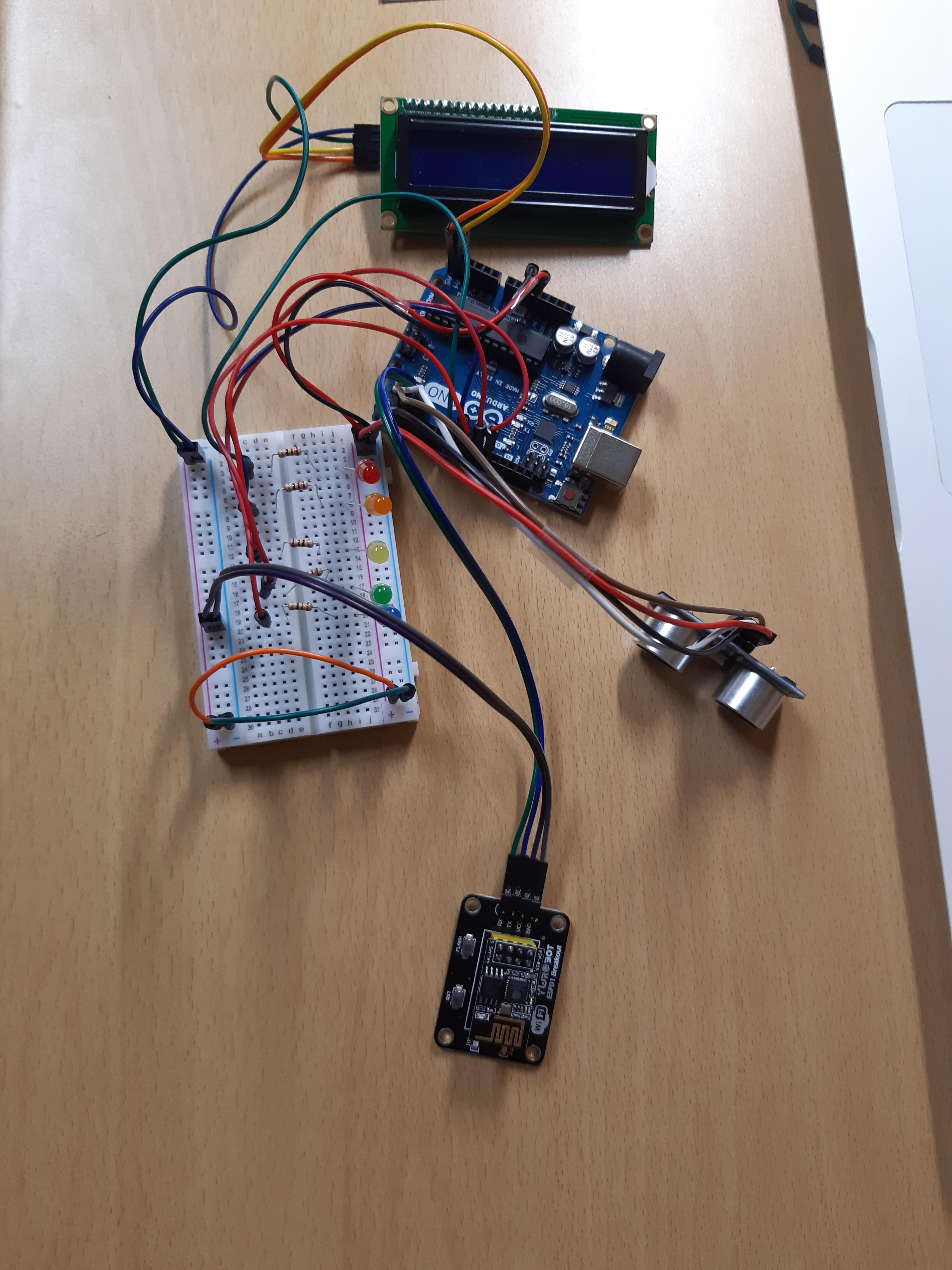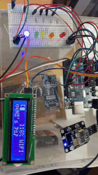 사용한 부품으로는 초음파센서, 와이파이모듈, LED, LCD, 아두이노(우노)가 있습니다.