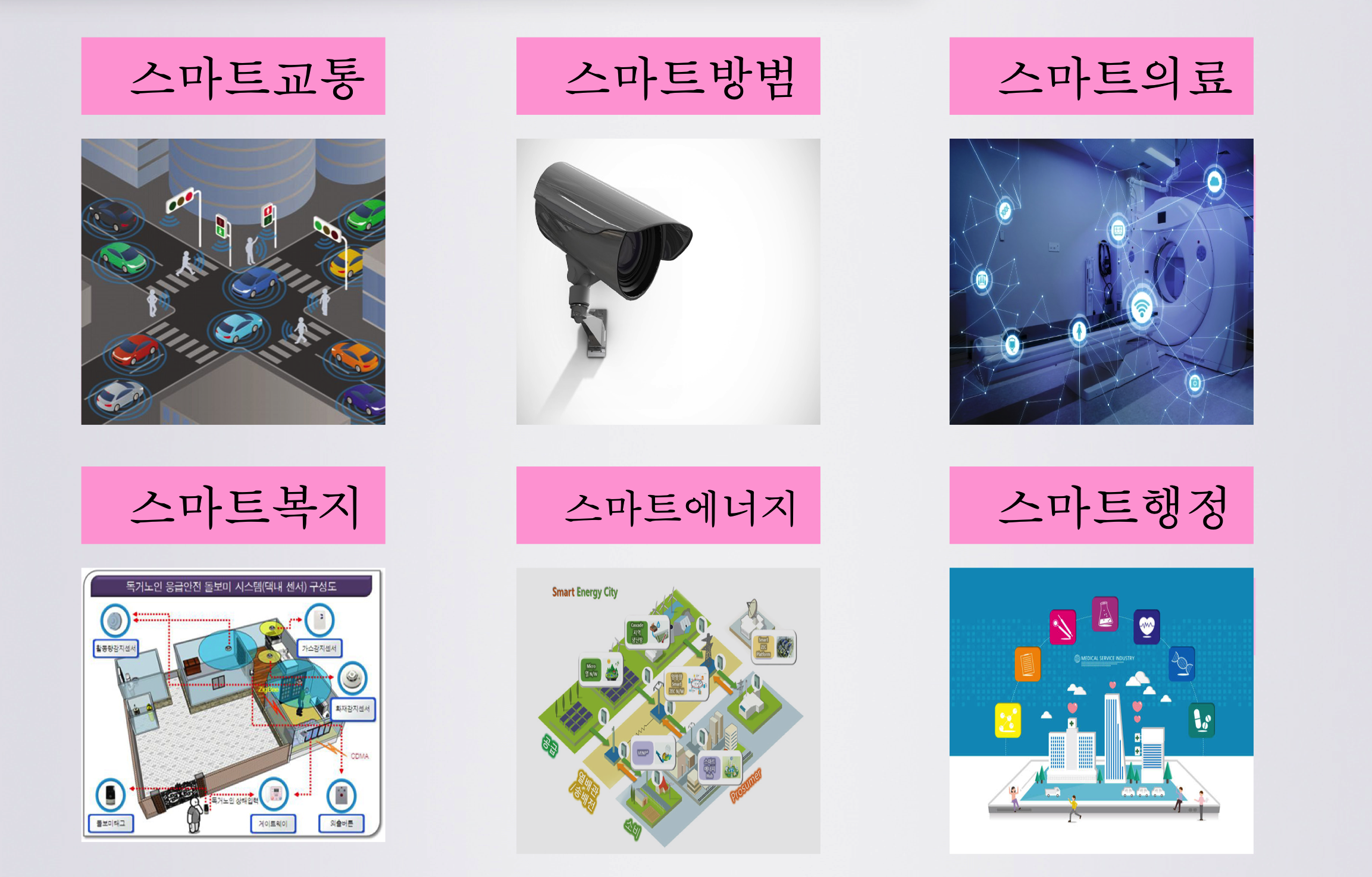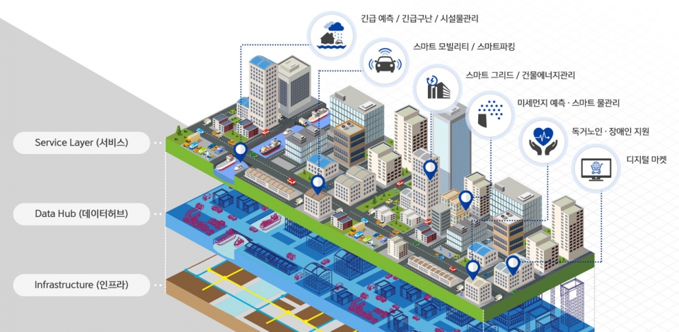 일과 삶의 질이 높고 지속 가능한 도시를 말합니다. 대기오염, 고령화, 소득양극화, 교통 혼잡 등 많은 사람들이 도심으로 몰리면서 발생하는 문제들을 정보통신기술을 이용하여 좀 더 효율적으로 해결할 수 있습니다.
